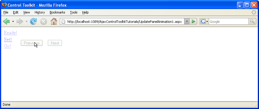 此方案中的动画将应用于 驻留在 中的 UpdatePanelASP.NET Wizard Web 控件。 三个 (任意) 步骤提供了足够的选项来触发回发: