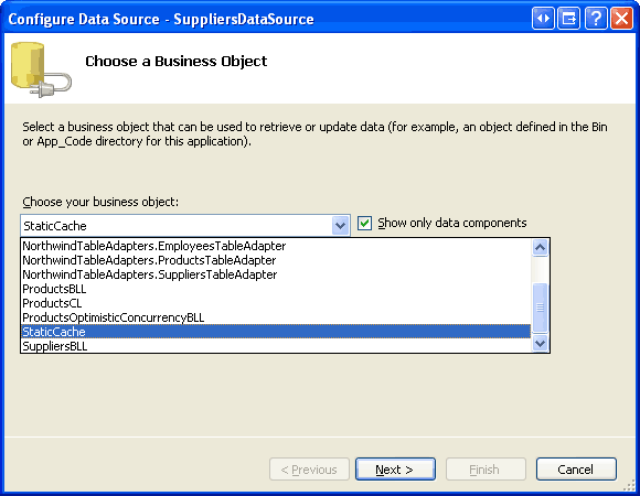 <asp:ObjectDataSource ID="SuppliersCachedDataSource" runat="server"