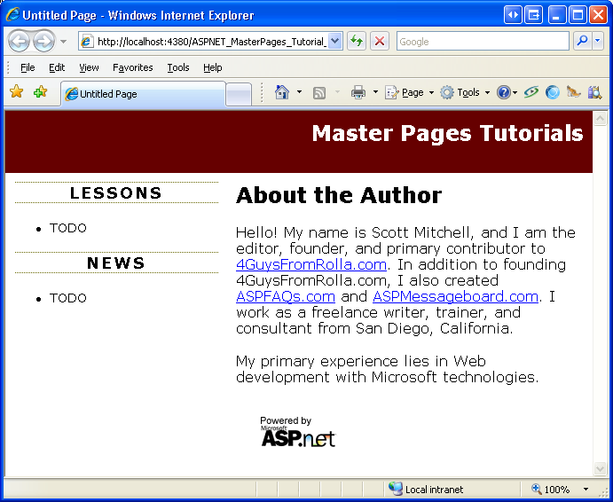这是探索使用母版页的一系列教程中的第一个教程。 在本教程系列教程中,我们将: