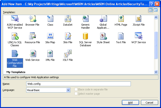 图 07:如果项目尚未包含 Web.config,请立即添加它 (单击以查看全尺寸图像)