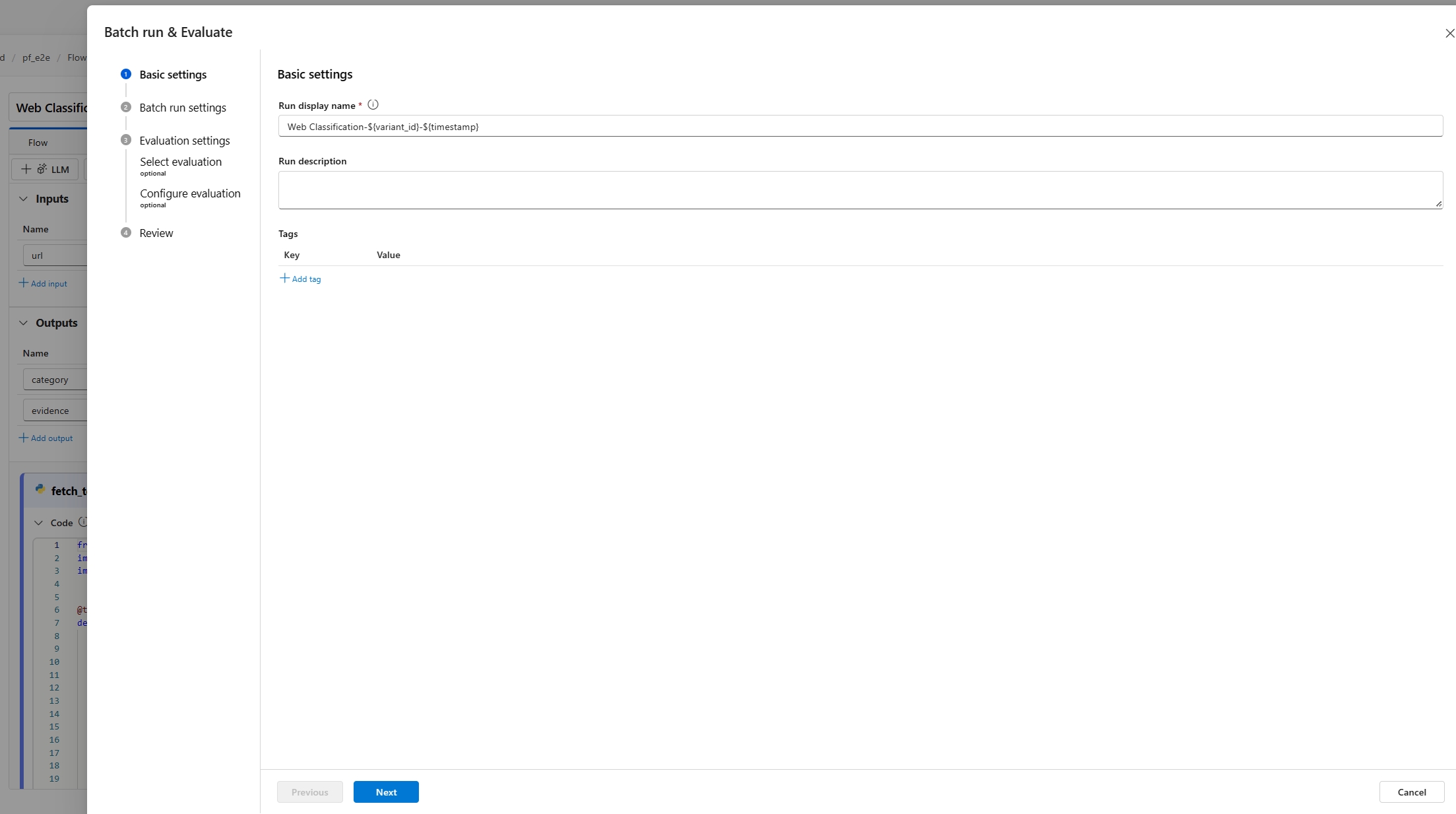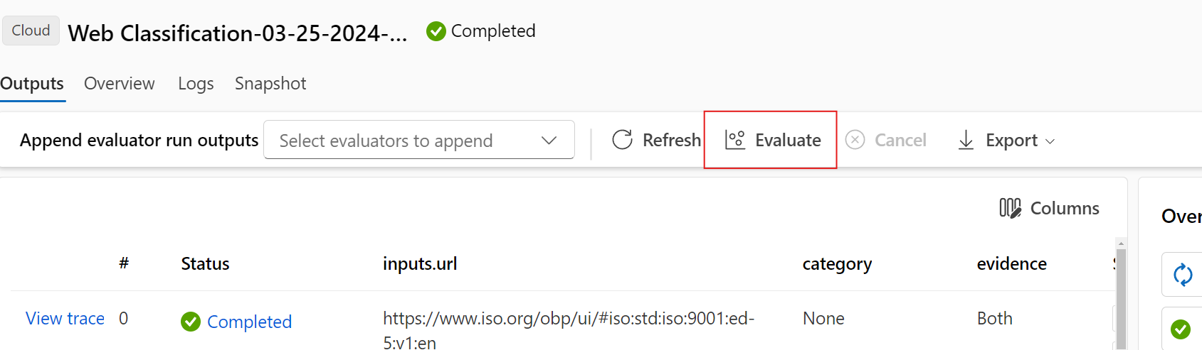 若要评估流在处理大型数据集时的性能,可以在提示流中提交批处理运行并使用评估方法。
