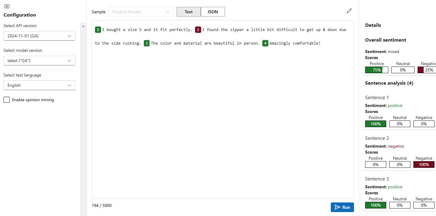 情绪分析和观点挖掘 预配置功能,可帮助你了解公众对品牌或主题的看法。 这些功能分析文本以识别正面或负面情绪,并可以将它们链接到文本中的特定元素。