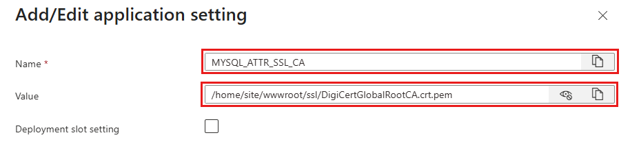 - 选择“AZURE_MYSQL_CONNECTIONSTRING”。