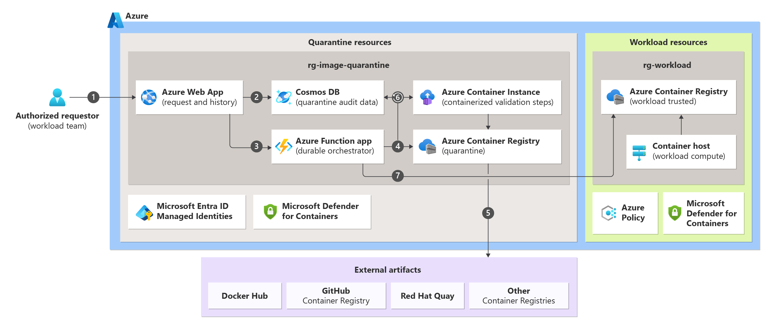 工作负荷团队通过 Azure Web 应用上托管的自定义应用程序发出外部映像请求。 应用程序仅从授权用户收集所需的信息。