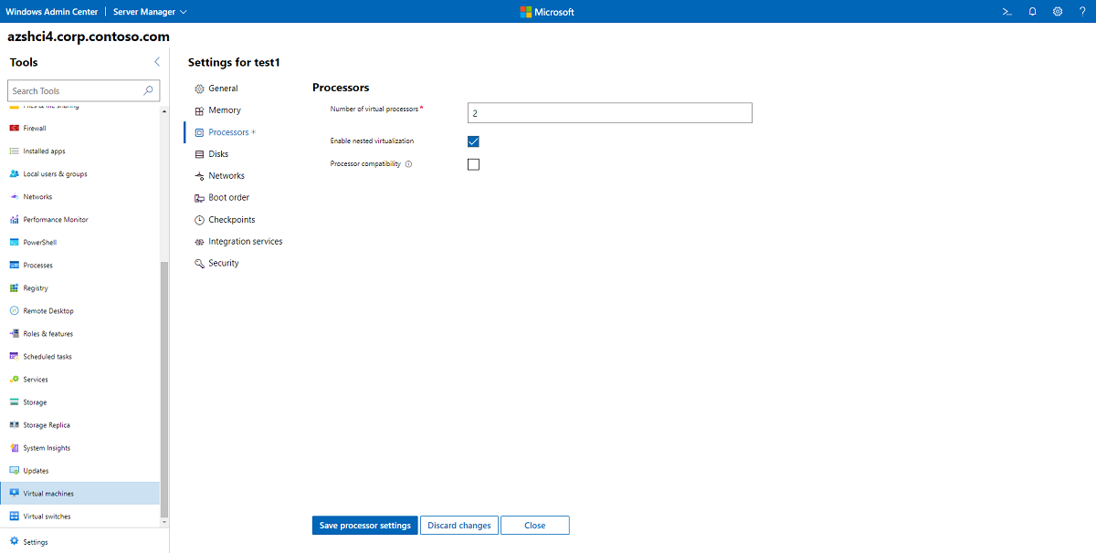 可以使用 PowerShell 或 Windows Admin Center 在 VM 上启用嵌套虚拟化。