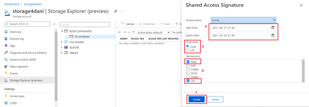 为 LRS 生成 Blob 存储 SAS 身份验证令牌