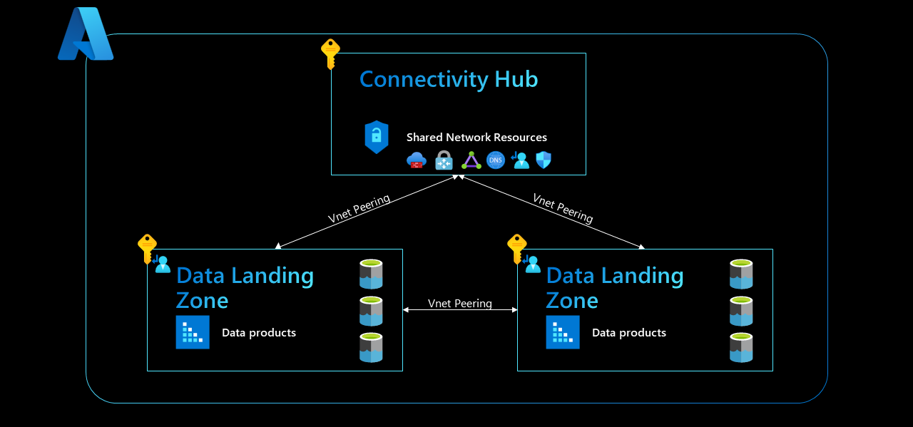 在此方案中,数据不会通过连接中心传递。 它位于由数据管理着陆区和一个或多个数据着陆区组成的数据平台中。