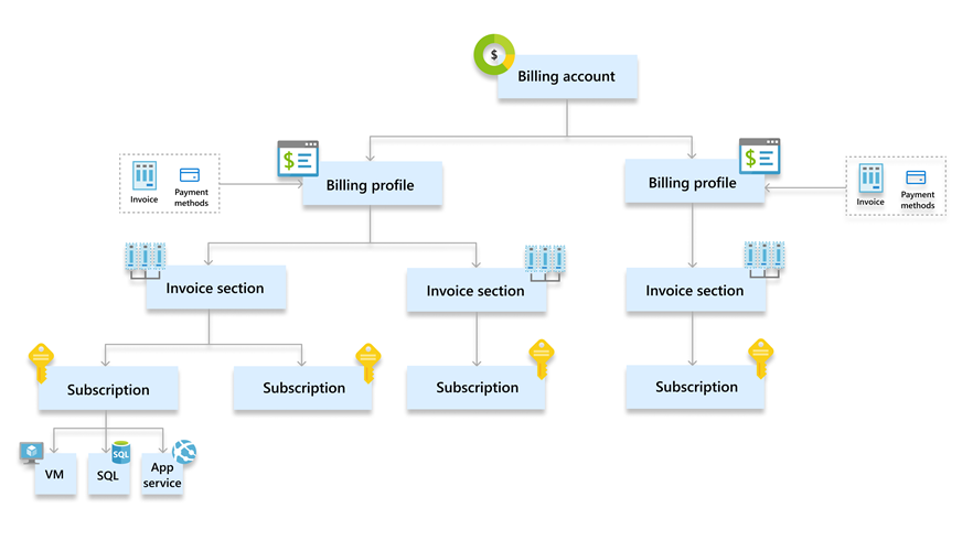 在 Microsoft 客户协议的计费帐户中,可以使用计费配置文件和发票科目来组织成本。