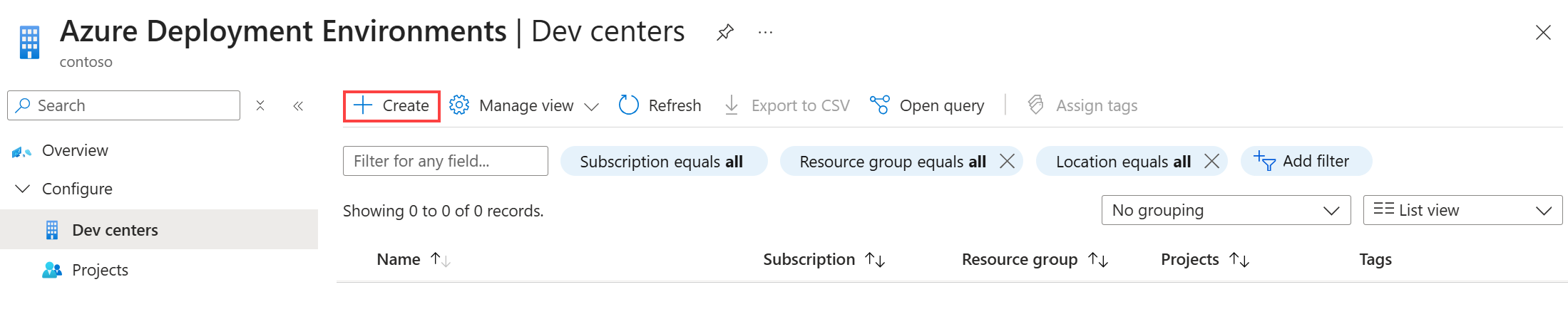 开发人员中心是部署环境的顶级资源,其中包含开发项目的集合。 在开发人员中心,你可以指定项目的通用配置,例如包含应用程序模板的目录,以及开发团队可将其代码部署到的环境类型。
