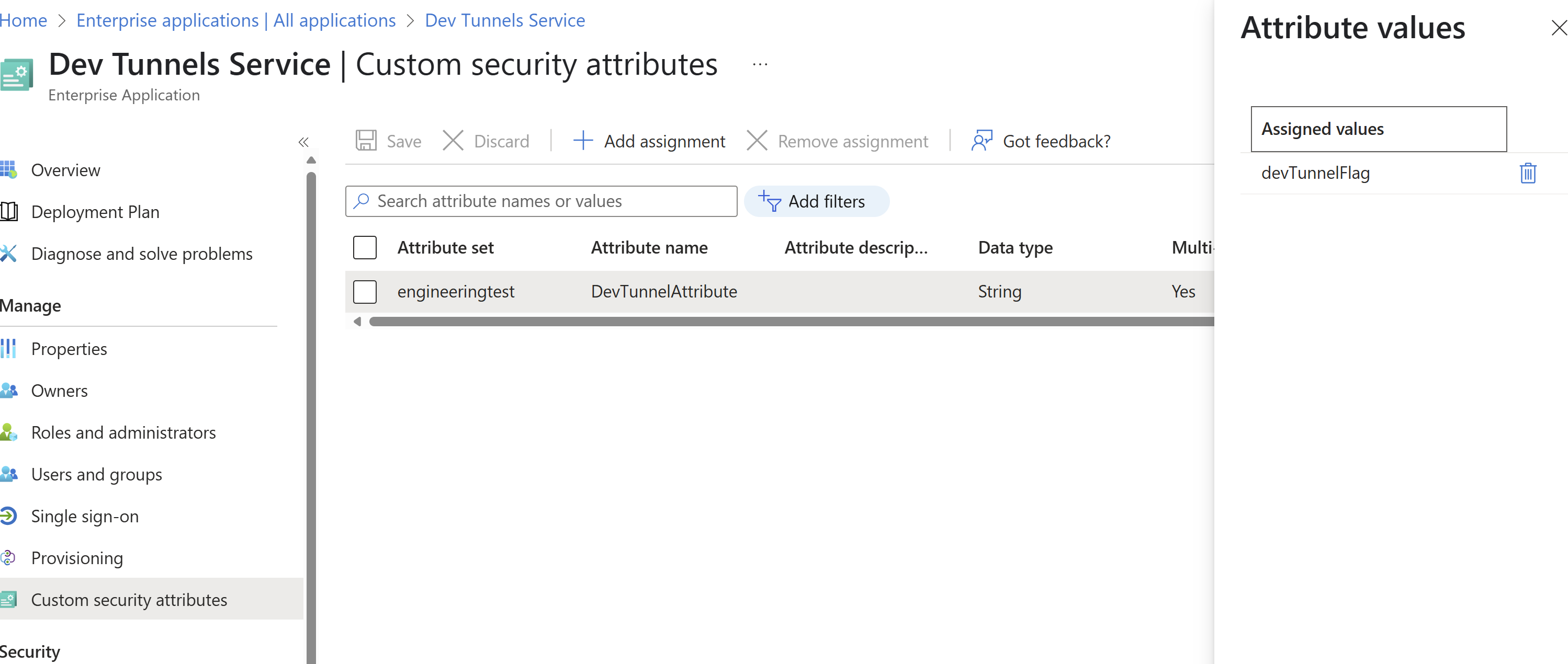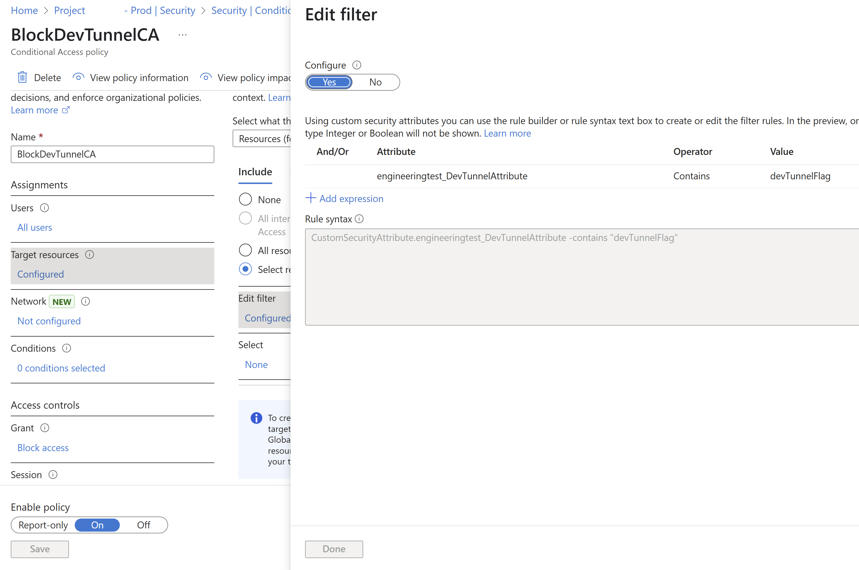 要用条件访问来保护 Dev Tunnels,需要使用自定义安全属性来针对 Dev Tunnels 服务进行配置。 本部分将指导你完成配置这些属性和创建适当的条件访问策略的过程。