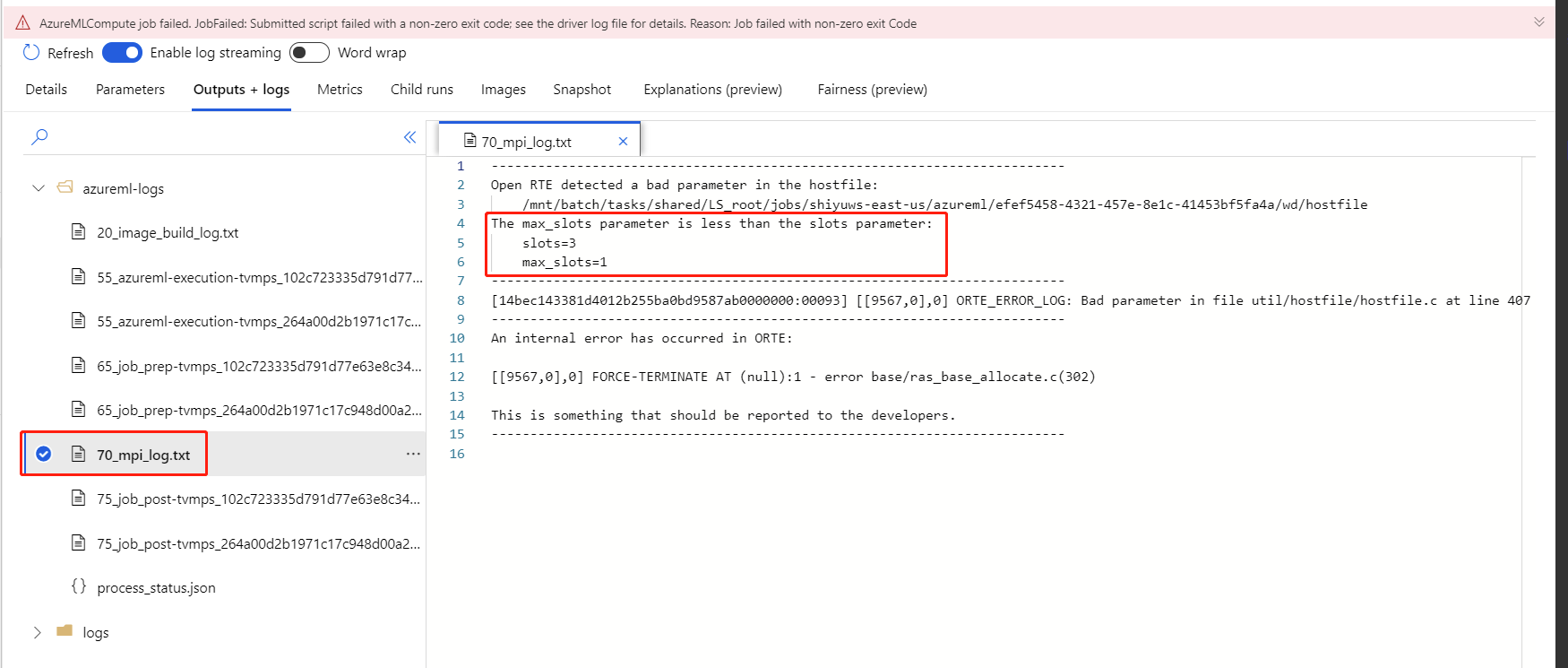 如果启用分布式训练的组件发生故障,但未生成任何 70_driver 日志,则可查看 70_mpi_log 以了解错误详情。