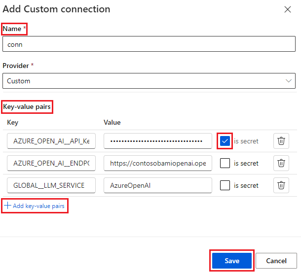 from promptflow.connections import CustomConnection