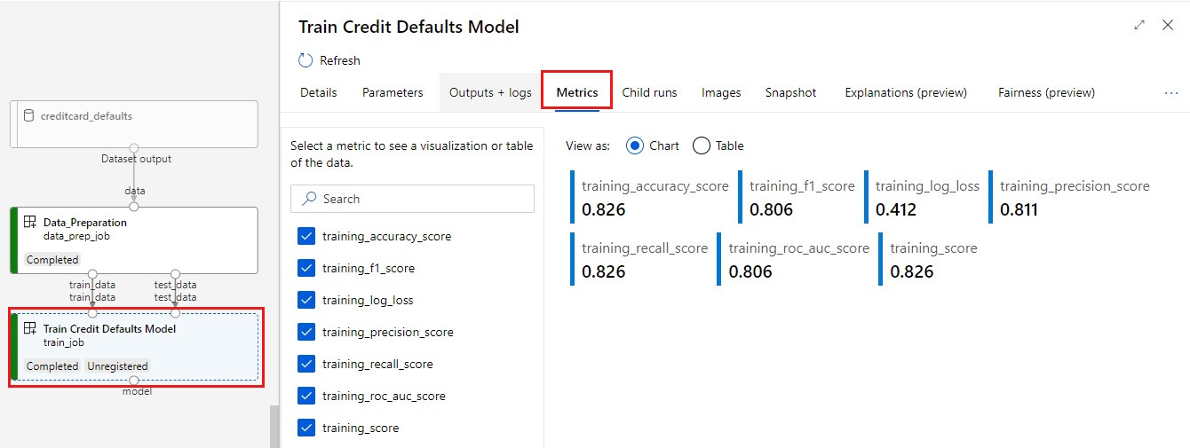 可以使用之前的单元格中生成的链接来跟踪管道的进度。 首次选择此链接时,可能会看到管道仍在运行。 完成后,可以检查每个组件的结果。