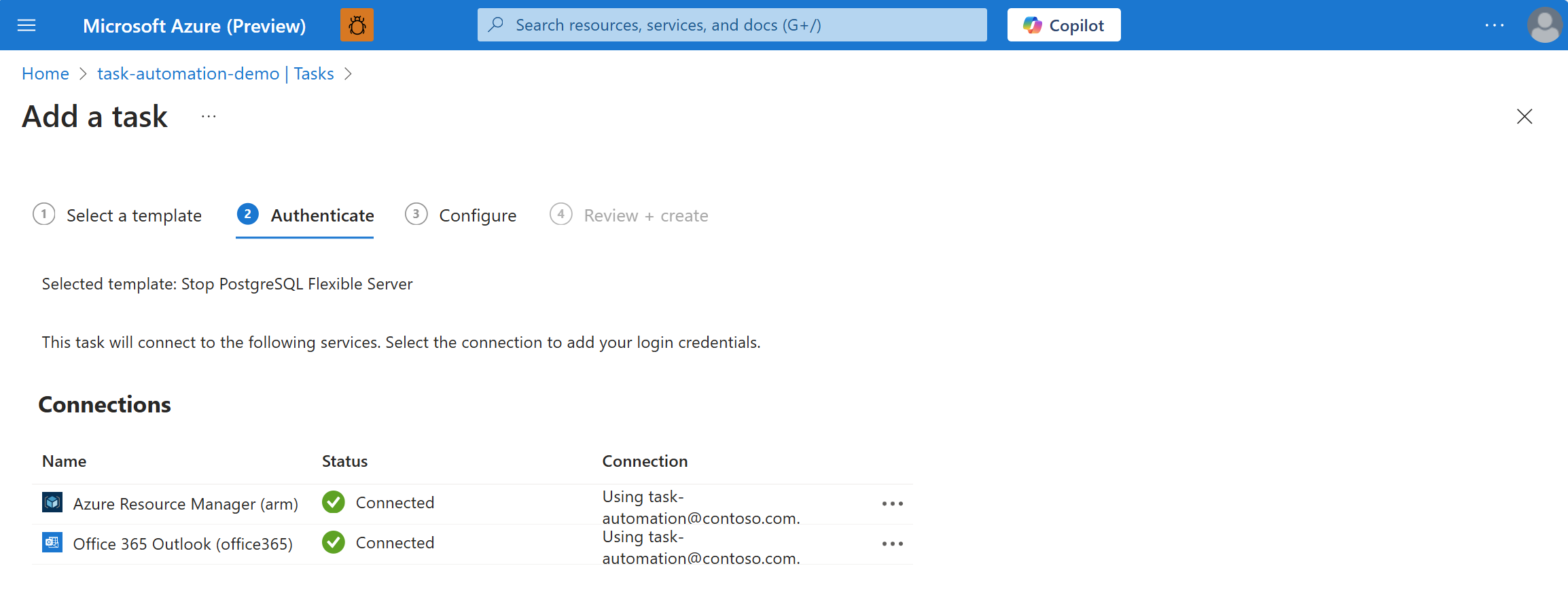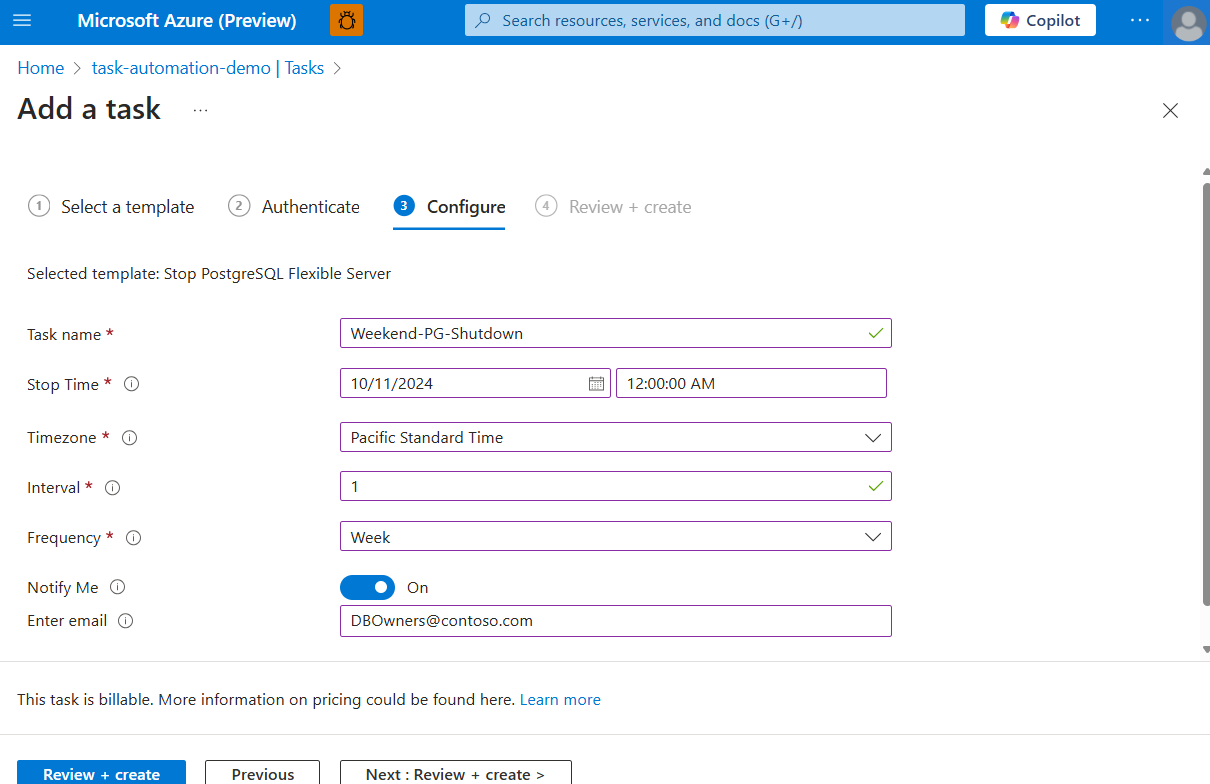 你还可以为其他常规任务(例如“发送资源的每月成本”和“缩放 Azure Database for PostgreSQL ”)设置自动化任务。