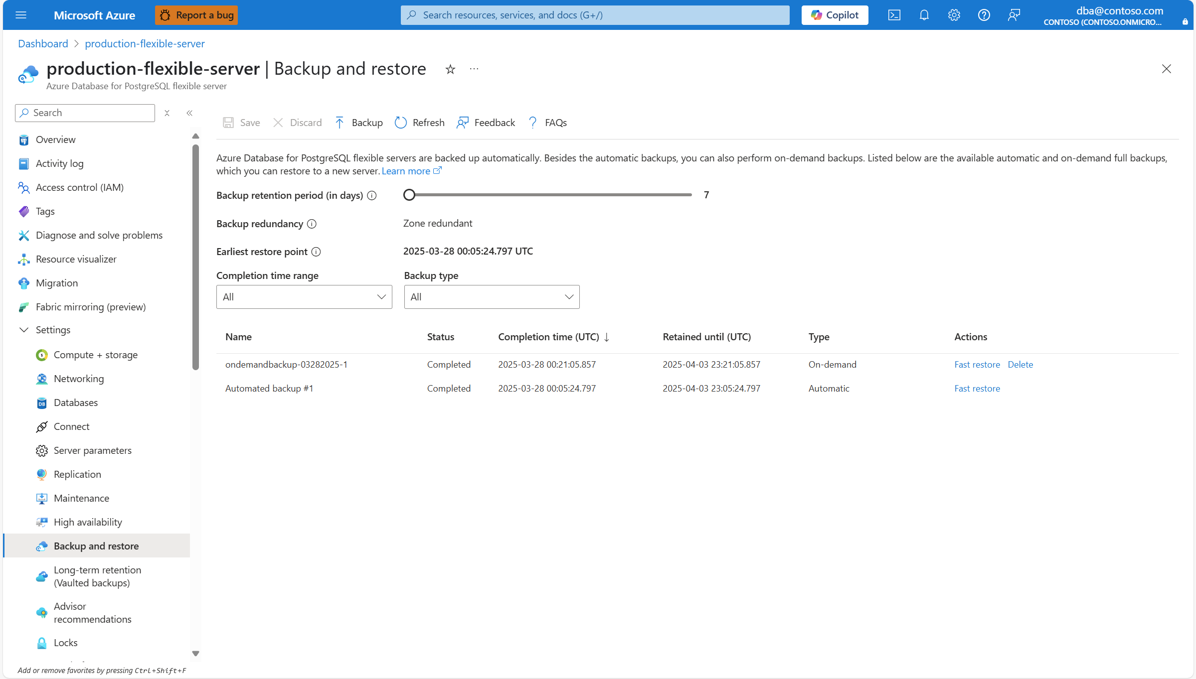 本文提供了列出 Azure Database for PostgreSQL 灵活服务器实例的所有完整备份的分步说明。