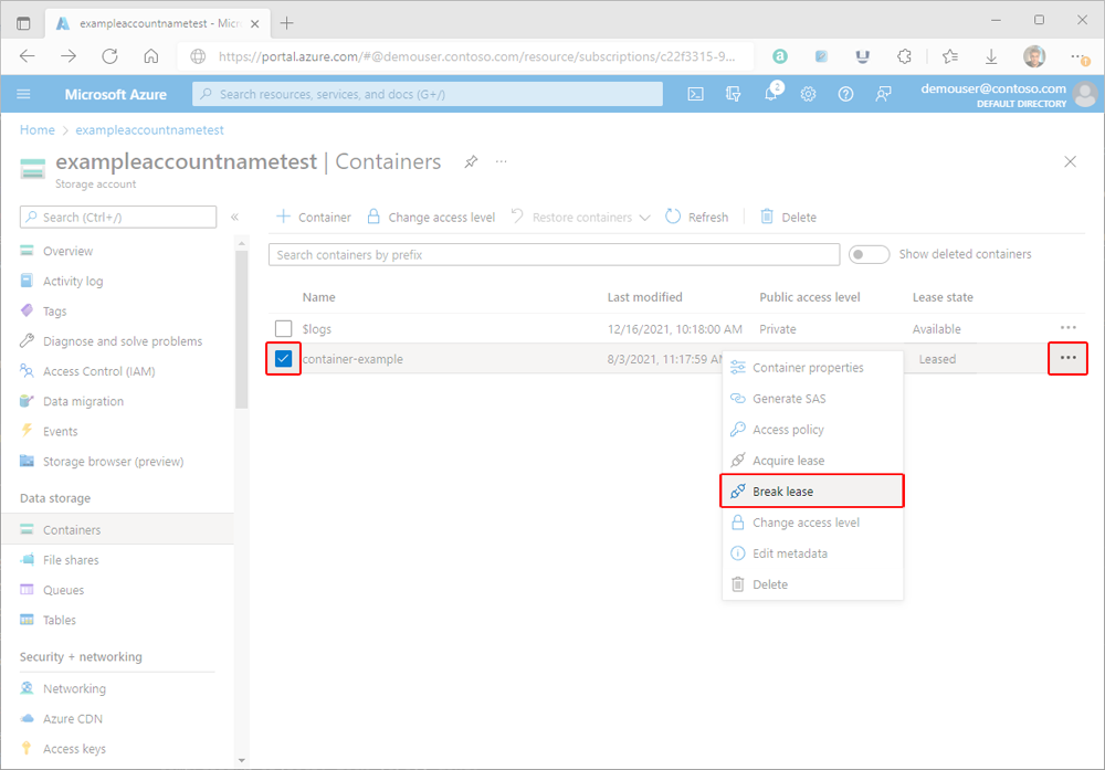 选择容器的 “更多 ”按钮(...),然后选择“ 中断租约 ”以中断租约。