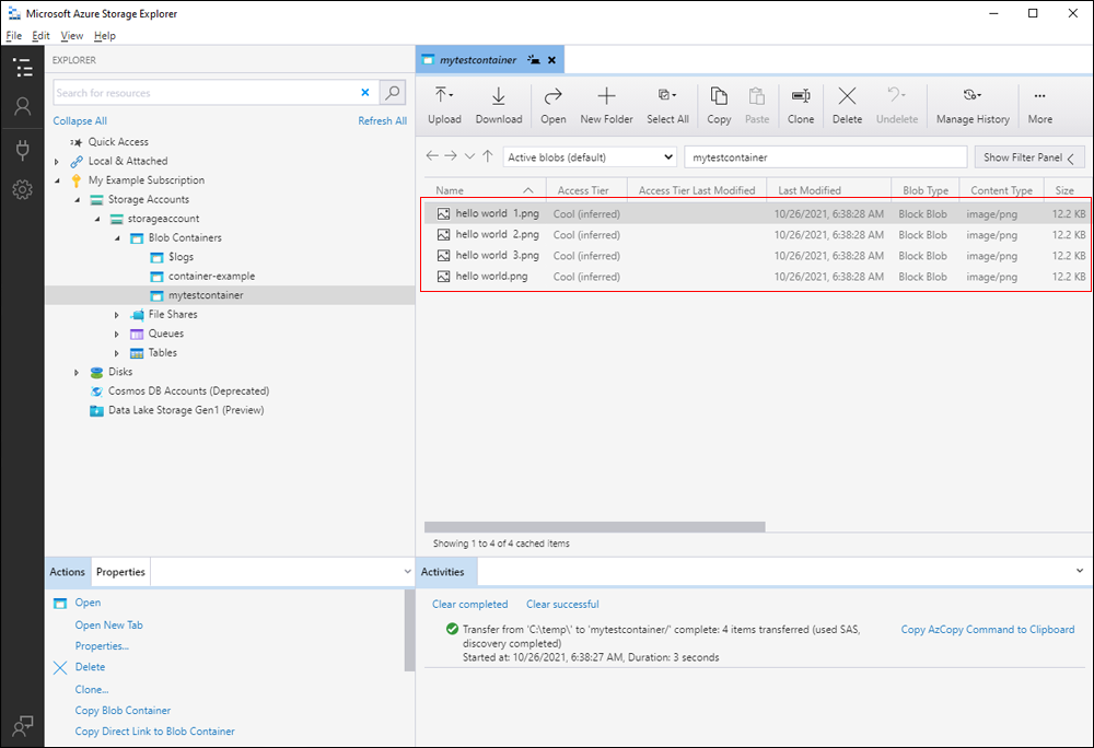 本快速入门介绍了如何使用 Azure 存储资源管理器在本地磁盘和 Azure Blob 存储之间转移文件。 要详细了解如何使用 blob 存储,请继续阅读 blob 存储概述。