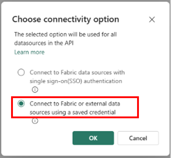 第二个选项 “已保存的凭据” 支持连接到 Fabric 外部的数据源和 Fabric 内部的数据源。 但是,保存凭据方法不支持 自动绑定 。 这意味着,如果在原始工作区(开发阶段)中使用已保存凭据将数据源连接到 GraphQL,则数据源将部署到管道中的目标工作区(测试阶段)。 但是,目标工作区中的 GraphQL 项将通过保存的凭据保持连接到原始工作区(开发阶段)中的数据源,而不是自动绑定到目标工作区中的本地数据源。 (请参阅下图)