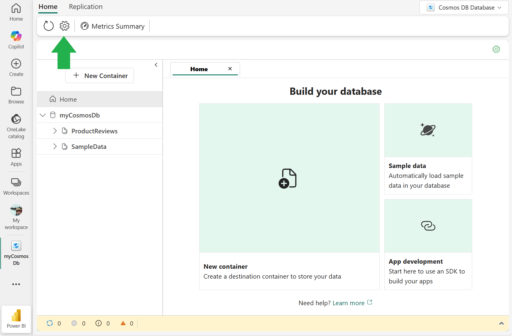 azure-cosmos库,然后安装它。 有关详细信息,请参阅 “管理库”。转到 Fabric Cosmos DB 项 设置。