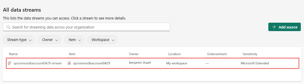 2. 在“实时中心”选择“所有数据流”。 若要查看新的数据流,请刷新“所有数据流”页。