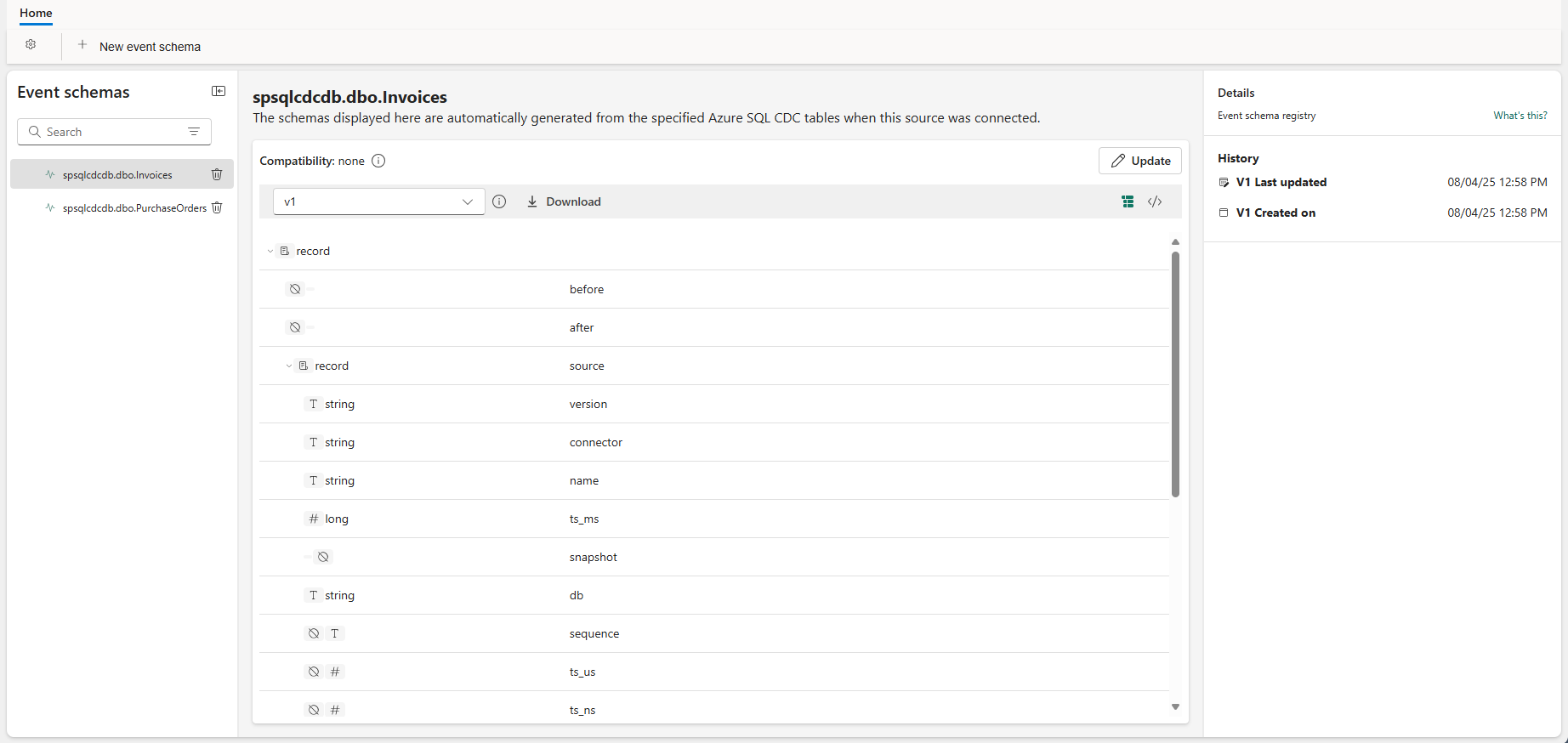 对于 Azure SQL 数据库中的所有表或所选表,连接器会自动发现和创建架构,并将其注册到架构注册表。