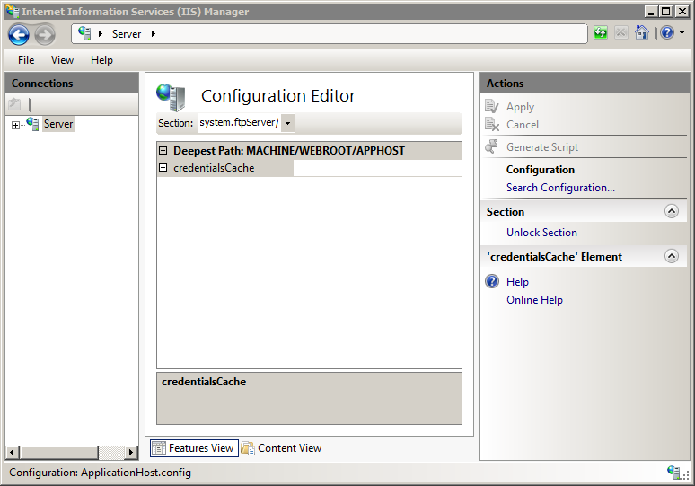 Set cachingSection = adminManager.GetAdminSection("system.ftpServer/caching", "MACHINE/WEBROOT/APPHOST")