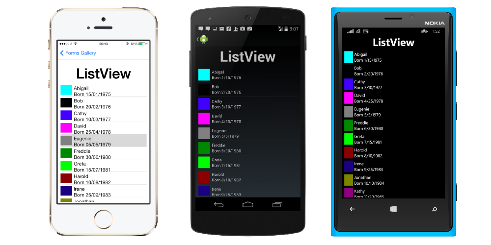 public class ListView : Xamarin.Forms.ItemsView<Xamarin.Forms.Cell>, Xamarin.Forms.IElementConfiguration<Xamarin.Forms.ListView>, Xamarin.Forms.IListViewController