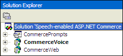 - Show how to create a voice-only service from an existing Web application: CommerceVoice leverages the existing business and data layers of the ASP.NET Starter Kit Commerce Sample it is based on, making only minor modifications. To this end, the Web-based version is included with this sample to illustrate how the two presentation-layers work together simultaneously on the same data. It is possible to place an order in the voice-only application and see that order immediately reflected in the Web version.