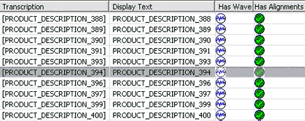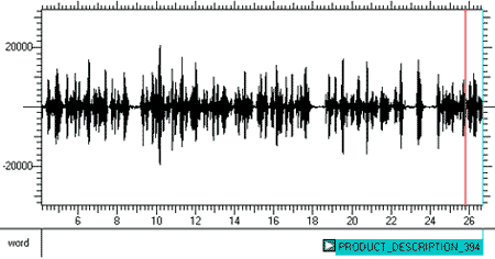 Although the prompt editor's automatic alignment feature is a powerful tool, it becomes unwieldy when recording lengthy prompts. In CommerceVoice, we needed to record the descriptions of all the products in the product catalog. Each description averaged over sixty words. In addition, using the alignment tool would require us to update our prompt database each time a description changed in the database, a costly and time-consuming prospect.