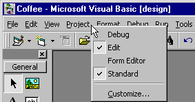 Before you begin this procedure, make sure you’ve returned the Coffee project to design mode, as described at the end of "How Modal and Modeless Forms Behave Out of Process."