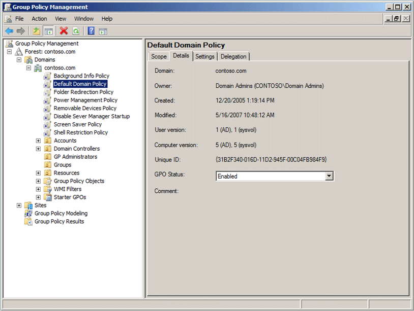 The following two examples illustrate deploying GPOs from staging to production environments. In the first example, the staging domain is located in the same forest as the production domain. In the second example, the staging domain is in a separate forest that is not trusted by the production domain. If you use a separate staging forest that is trusted by the production domain, the steps are the same as in the first example, where the staging domain is part of the production forest.