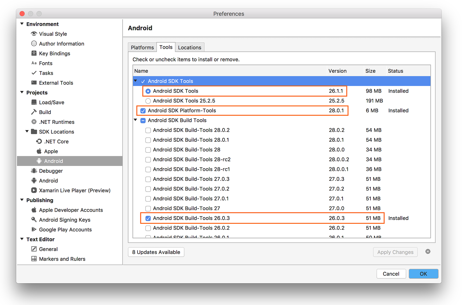 必须安装 Android SDK(请参阅设置用于 Xamarin.Android 的 Android SDK)。