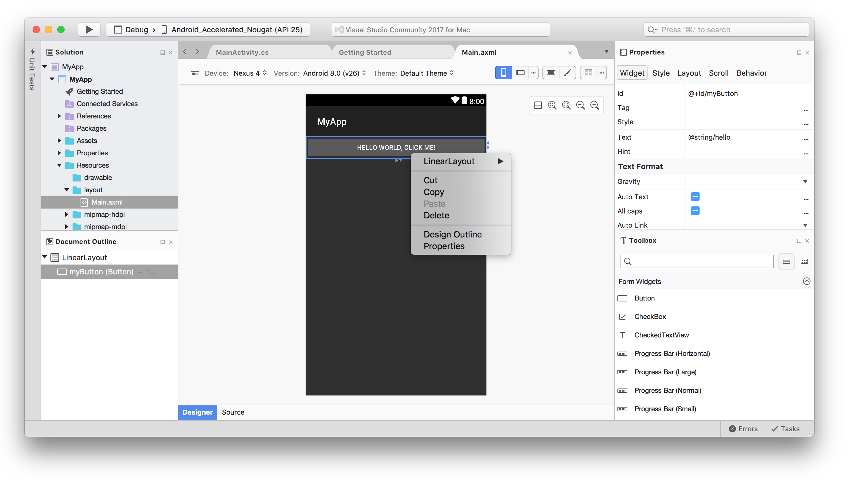 本主题介绍 Xamarin.Android Designer 的功能,说明如何启动 Designer,描述 Design Surface,并详细介绍如何使用“属性”窗格编辑小组件属性。