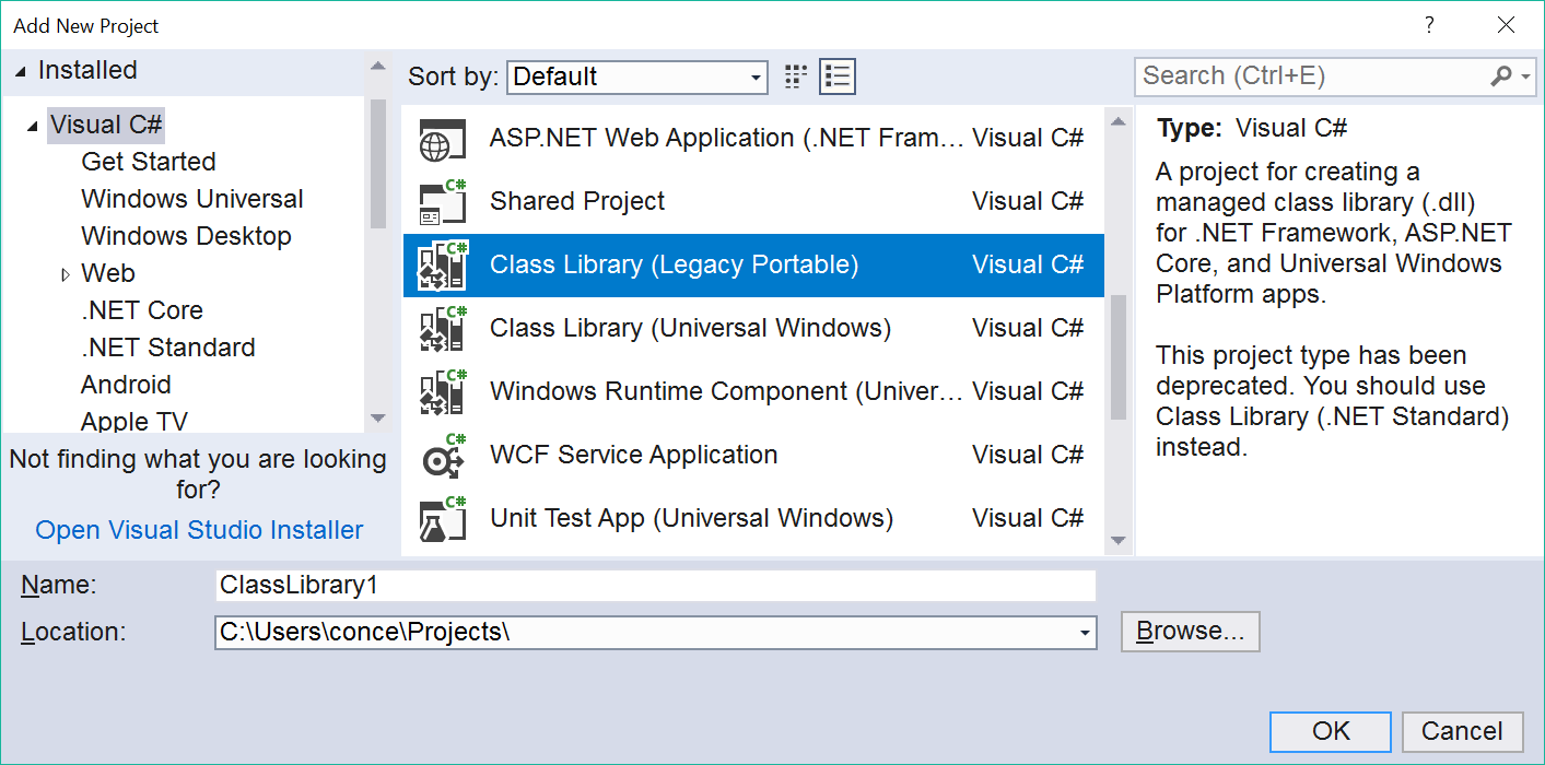 将可移植类库添加到解决方案与添加常规库项目非常相似。