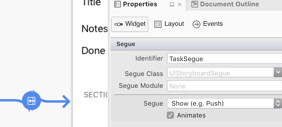if (segue.Identifier == "TaskSegue") { // set in Storyboard