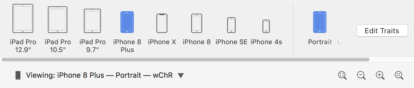 请注意,选择设备和方向只会更改 iOS 设计器预览设计的方式。 无论当前做出了哪种选择,新添加的约束都会应用于所有设备和方向,除非已使用“编辑特征”按钮进行其他指定。