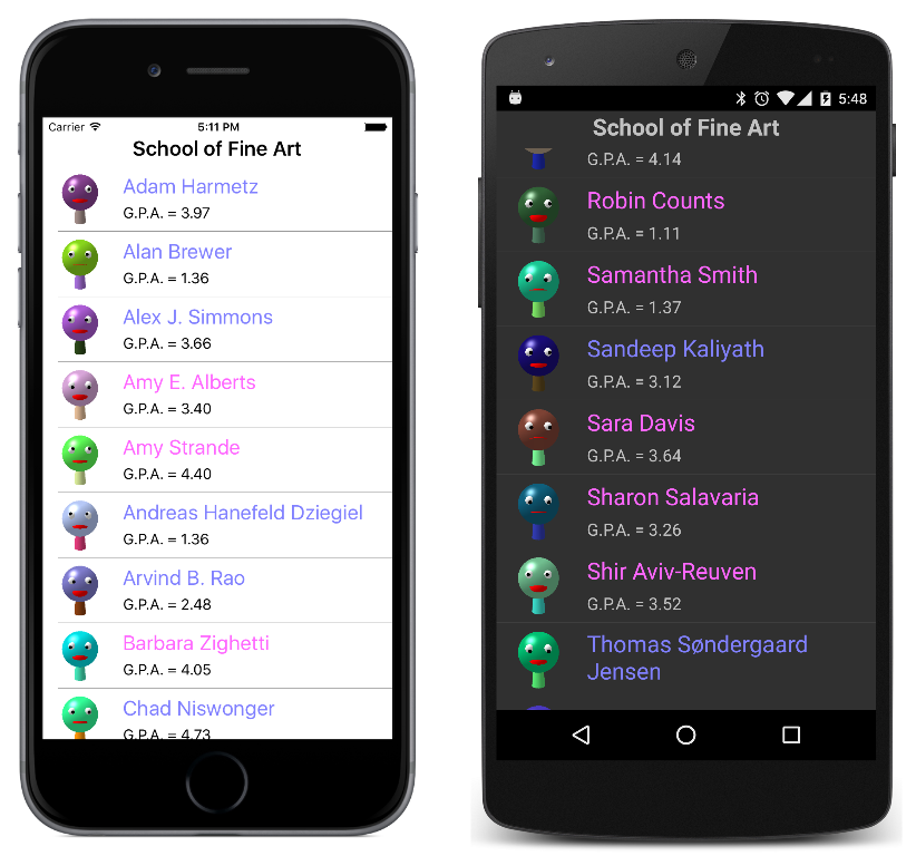GenderColors 示例需要 SchoolOfFineArt 库,并根据 Sex 属性将学生姓名的颜色设置为蓝色或粉色: