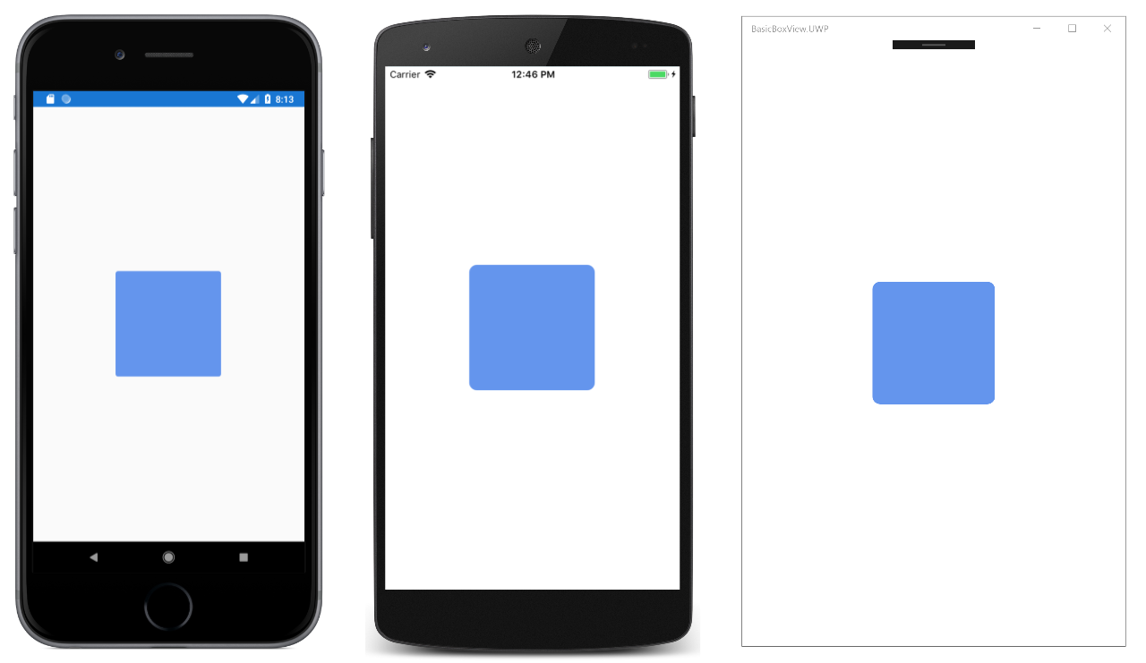 BoxView 渲染指定宽度、高度和颜色的简单矩形。 可以针对修饰、基本图形以及通过触摸与用户的交互使用 BoxView。