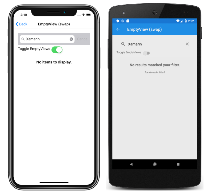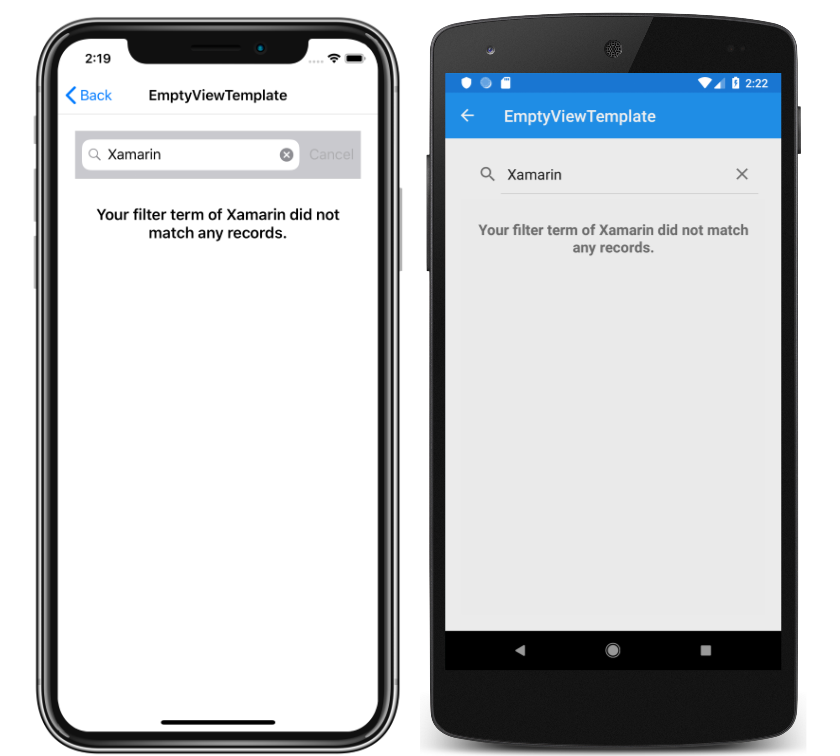 EmptyView = new FilterData { Filter = searchBar.Text },
