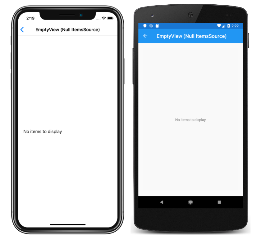 结果是,由于数据绑定集合为 null,因此将显示设置为 EmptyView 属性值的字符串: