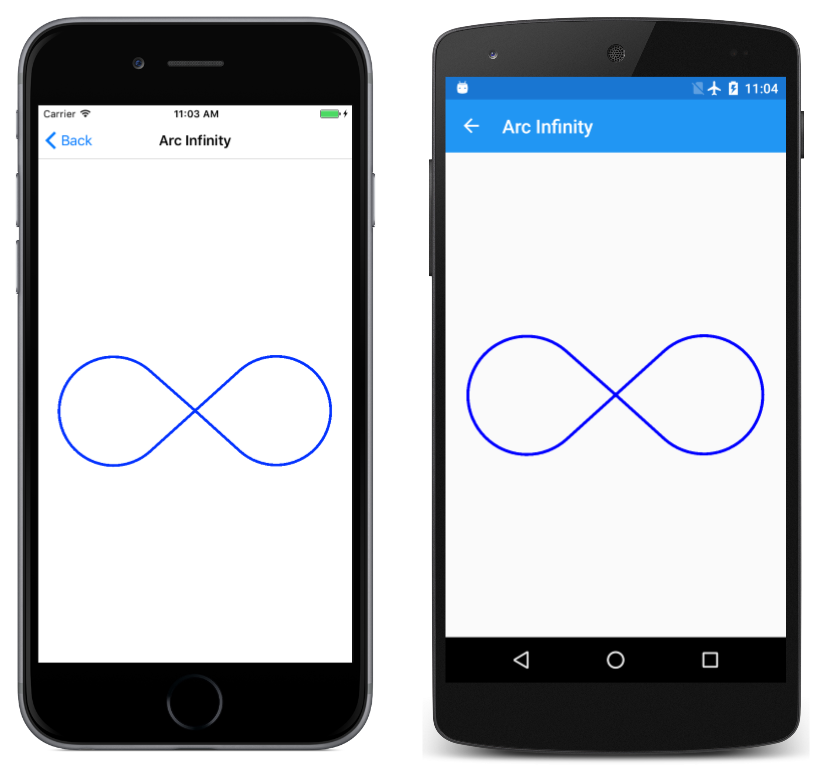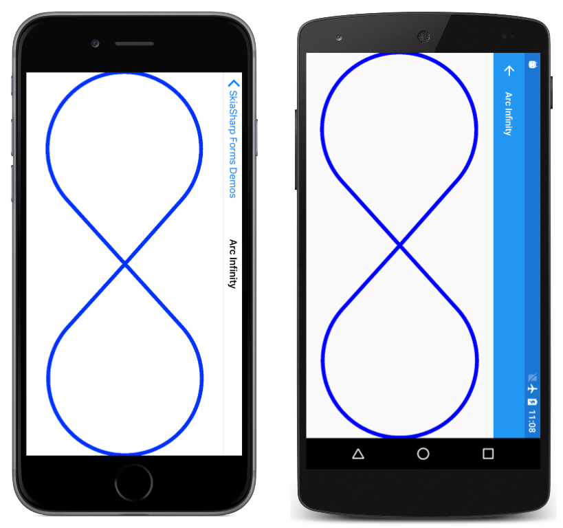 ArcInfinityPage 类中的 PaintSurface 处理程序将无穷大符号定位在页面中心,使 (0, 0) 点位于页面中心,并根据屏幕尺寸缩放路径: