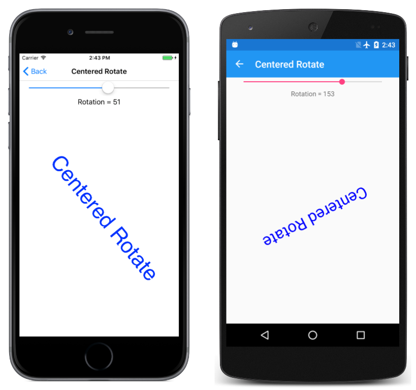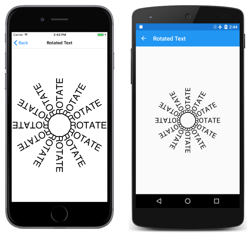 “居中旋转”页面与基本旋转相同,只是扩展版本的 RotateDegrees 用于将旋转中心设置为用于定位文本的相同点: