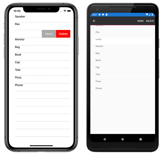 ListView以刷新内容。 - 上下文操作允许开发人员指定对各个列表项的自定义操作。 例如,你可以在 iOS 上实现滑动触发操作,或者在 Android 上实现长按操作。