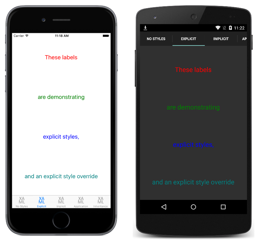 new Label { Text = "explicit styles,", Style = labelBlueStyle },