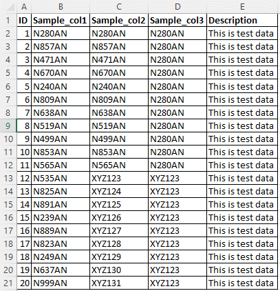 请考虑下图中的示例源数据。 有五列,自定义分类规则应应用于数据模式 N{Digit}{Digit}{Digit}{Digit}{Digit}ANSample_col1、Sample_col2和Sample_col3列。