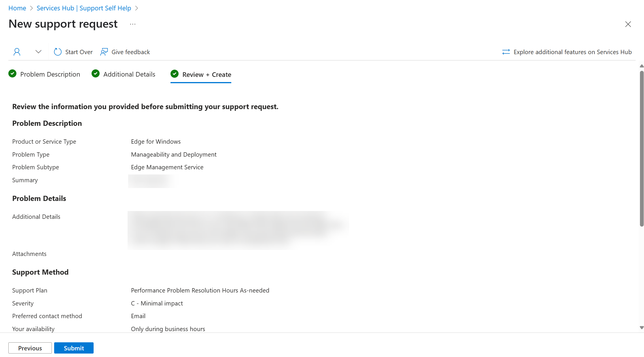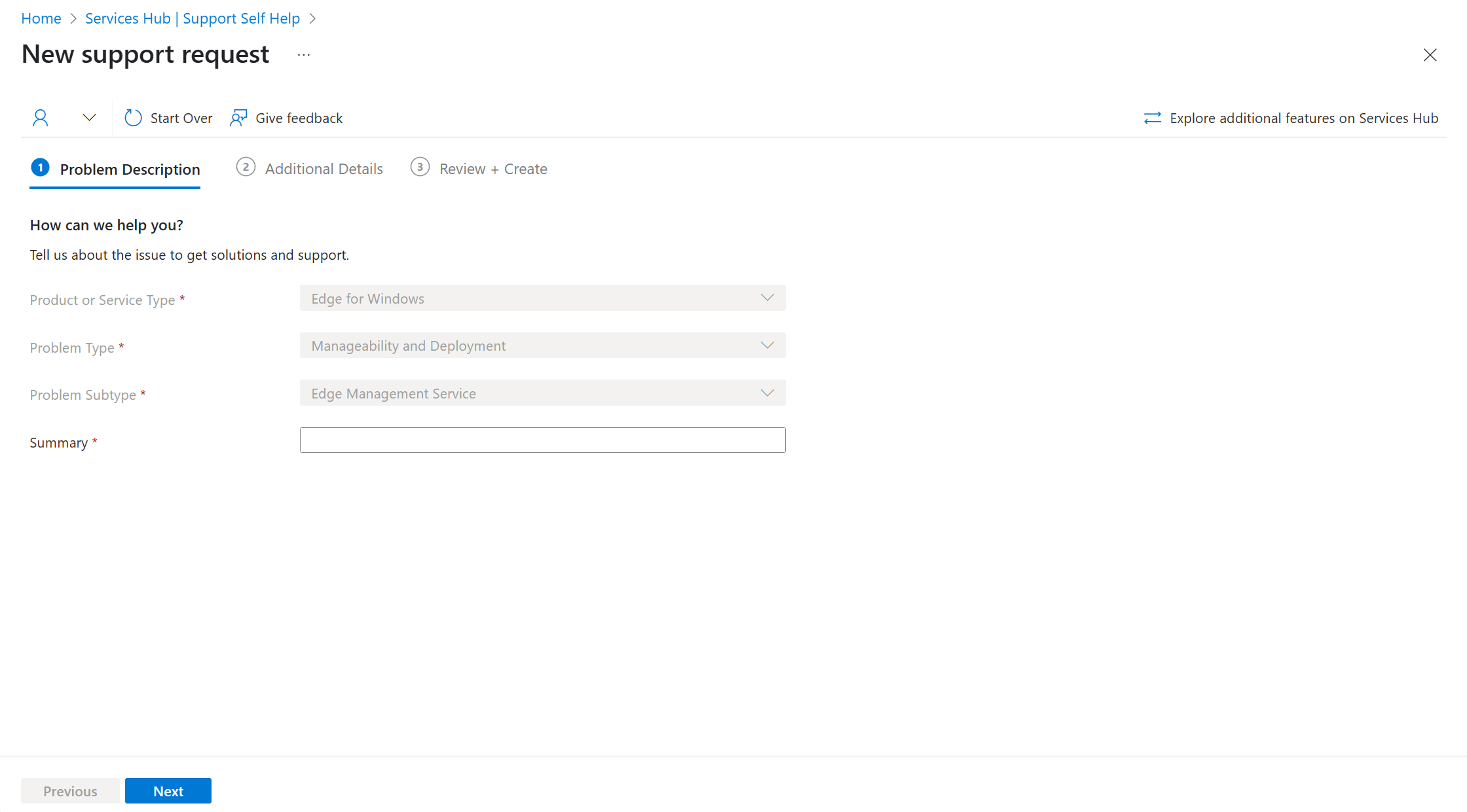 现有:这是 Services Hub 中当前的支持请求创建流程,也是大多数客户目前使用的体验。