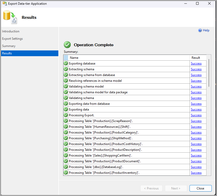 导出过程分为两个阶段,以创建.bacpac导出文件。