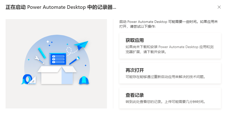 接下来,选择添加录像,本操作将会打开桌面版 Power Automate。 确保立即安装桌面版 Power Automate(如果尚未安装)。
