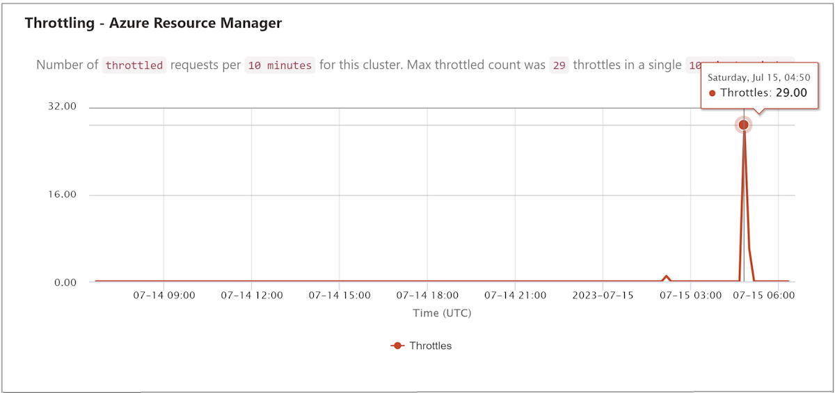 限制 - Azure 资源管理器:此诊断显示 AKS 群集中指定时间范围内受限制的请求数。