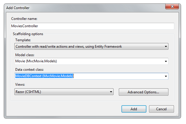 - 控制器名稱:MoviesController。 (這是預設值)。